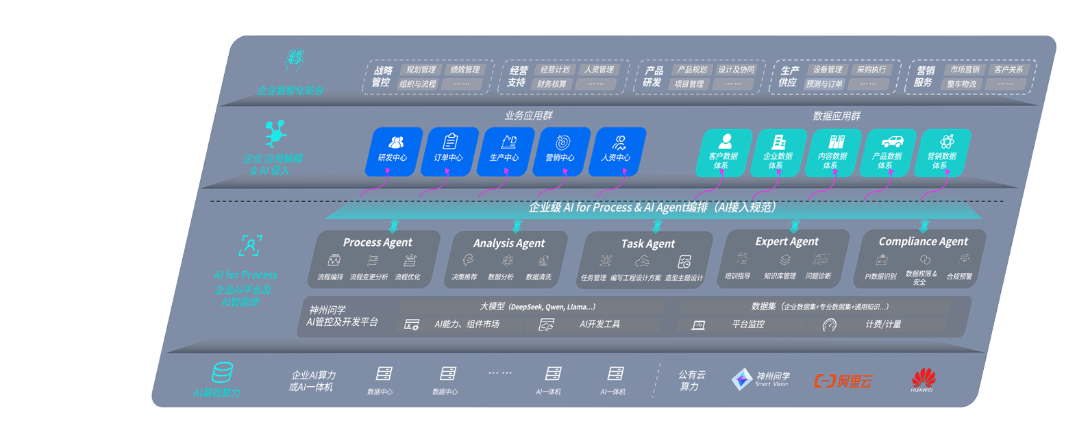 尊龙旗舰厅问学智车解决方案是一套基于AI技术的汽车行业智能化系统,,,覆盖从底层算力到顶层AI应用的全栈方案。。。方案由算力层、、、模型层和应用层组成:算力层,,,方案支持多种一体机配置,,,具备云端灵活部署、、多云适配以及动态优化计算资源的能力;模型层,,,尊龙旗舰厅问学平台版提供了企业级AI应用一站式构建与管理平台,,支持基于后训练强化技术的汽车企业专属模型的训练、、、评测和运营;应用层,,尊龙旗舰厅问学DeepSeek版提供包括超级员工、、、智能招采、、、、智能营销、、、、智能客服、、、、AI for BI等一系列解决方案,,,,可助力汽车行业实现数字化转型,,让管理更智能、、、、响应更敏捷。。。