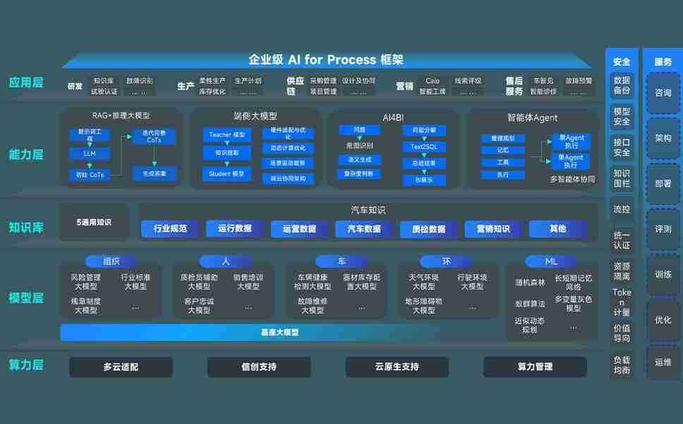 端到端的一站式AI工作空间深度融合了从企业战略规划到日常经营的全流程业务板块,,定向解决车企内部领域多、、部门多、、链条长、、、场景碎片化等难题,,支持车企快速构建以AI为核心的生产力写作体系,,实现任务执行与AI能力的无缝集成与交互